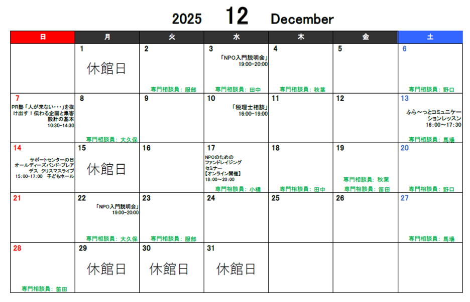 【12月1日更新】12月のサポートセンタースケジュール