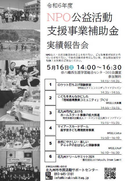 NPO公益活動支援事業補助金について、下記の通り令和6年度に採択された団体の実績報告会を開催します。